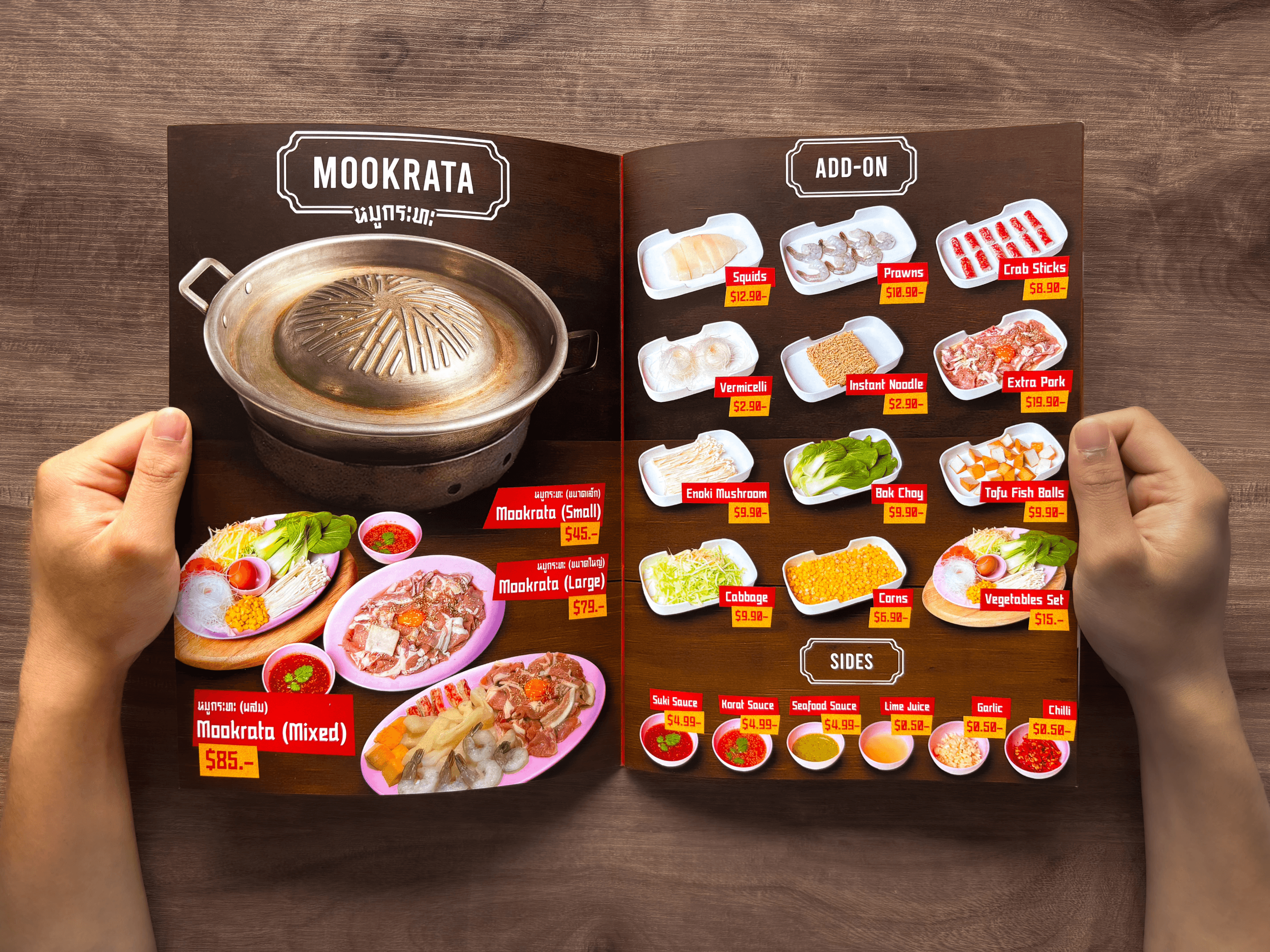 The idea of “Mookratra” -Thai BBQ- as the main focus on the logo